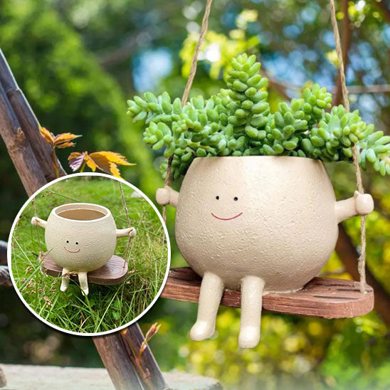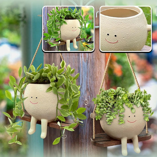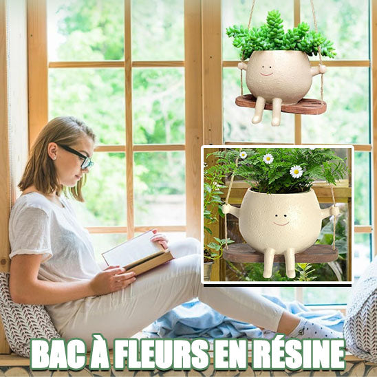 Pot de fleur en résine avec visage souriant mignon : Égayez votre jardin avec charme